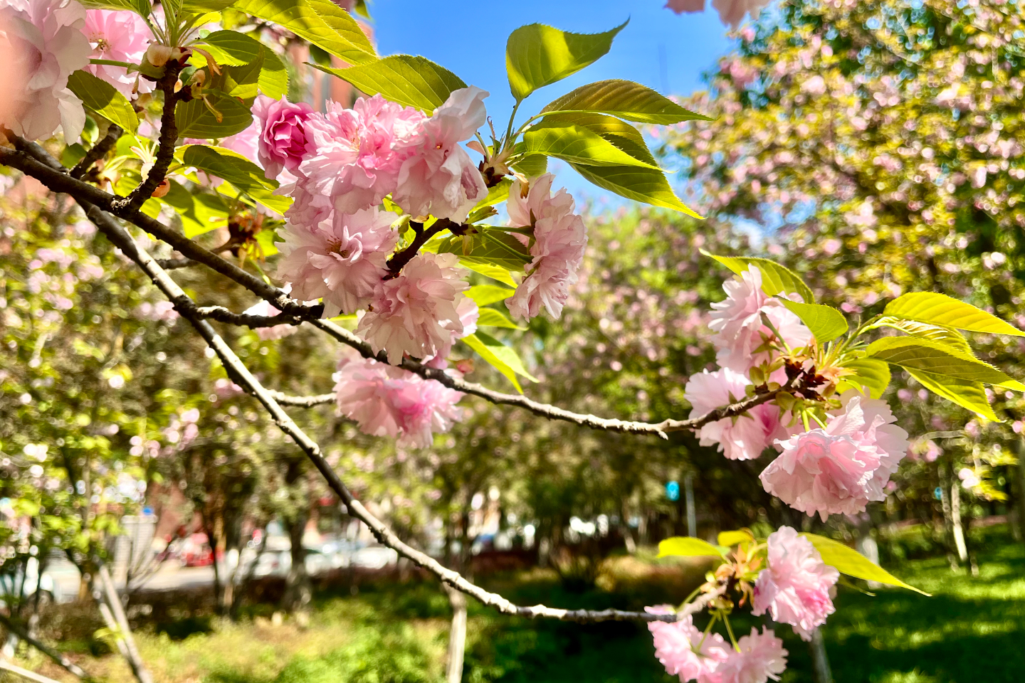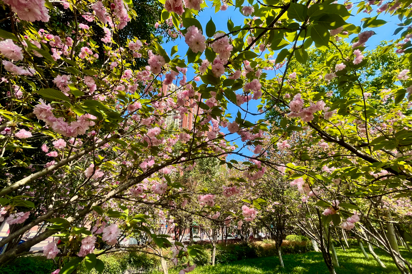樱花红陌上,杨柳绿池边。在春意渐暖的时节里,樱花仿佛是春的信使。眼下,奉节滨河公园的百余株晚樱绽放缀枝头,树树繁花,犹如粉色的云霞。漫步樱花树下,一簇簇娇艳的花朵绚丽绽放,轻盈、柔和、朦胧,微风吹袭,摇曳生姿,仿佛在诉说着对春天的热爱。